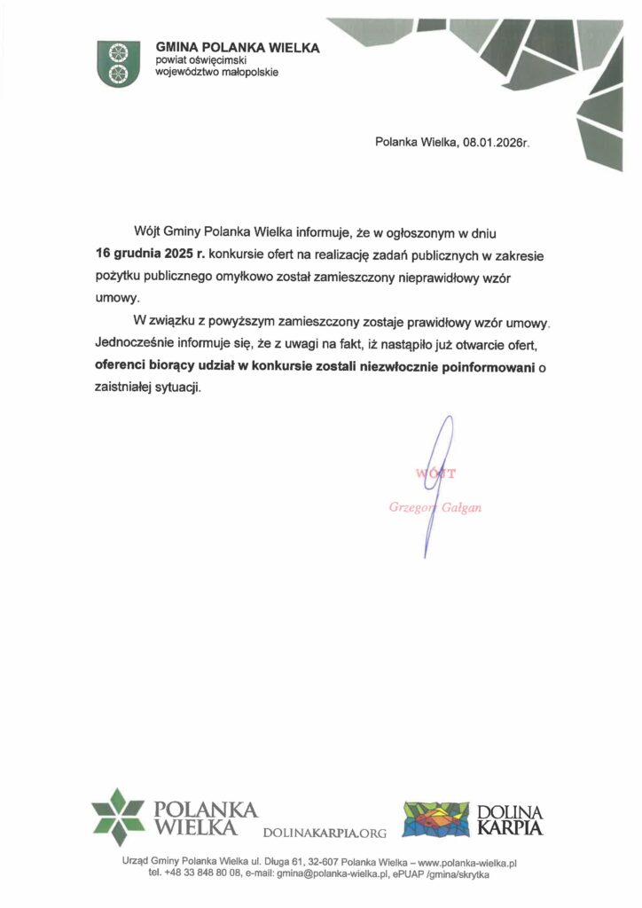 W dniu 13 stycznia 2026 roku (wtorek) o godzinie 16:30 w Ochotniczej Straży Pożarnej w Polance Wielkiej (mała sala) odbędzie się posiedzenie komisji do spraw Ochrony Środowiska, Zdrowia i Pomocy Społecznej.